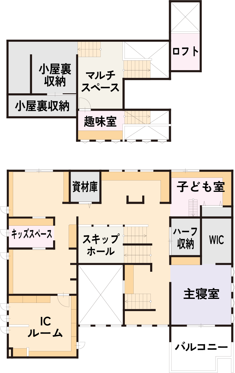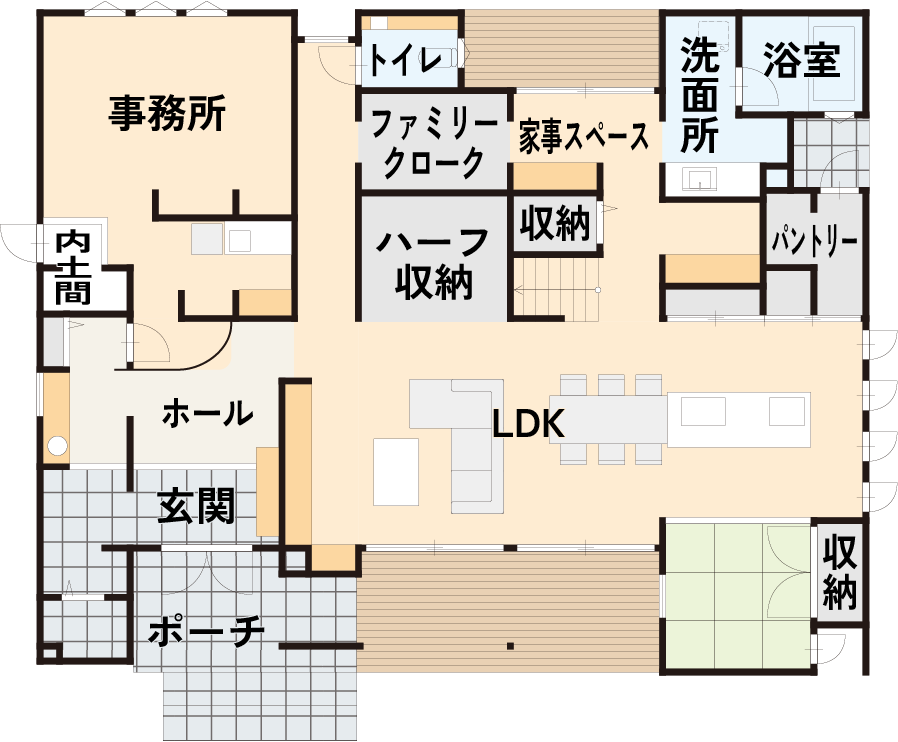 - ハーフ吹抜け窓からも光が差し込む心地よい空間。