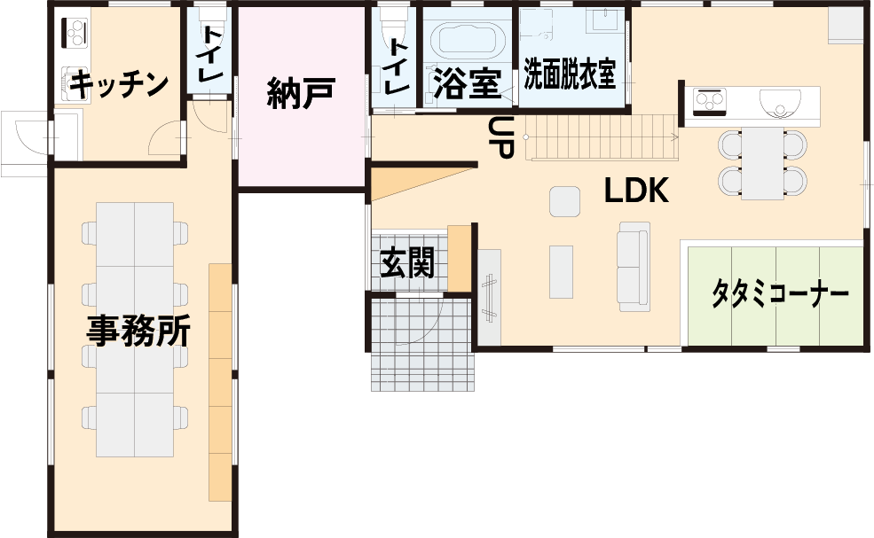- キッチン〜ダイニング〜水まわりがスムーズにつながる、効率的な設計。